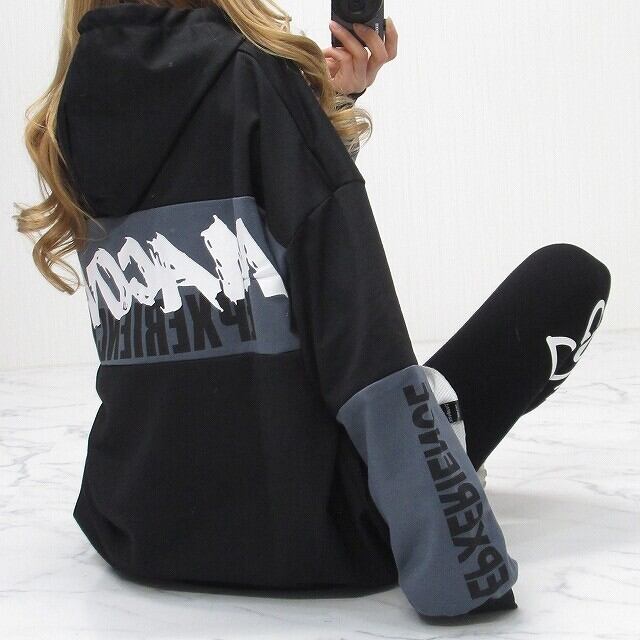 袖ロゴ&Frontロゴ&バックロゴ配色切替でどこから見てもオシャレ感抜群!ストリートBOYSストリートBOYSカジュアル♪ ダボっとビッグシルエットパーカー ☆