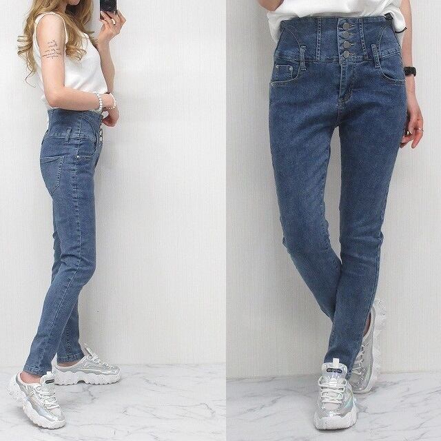 【3size】Front4連ボタン ハイウエスト 美脚小尻◎ スーパーストレッチ スキニーデニム ブルー