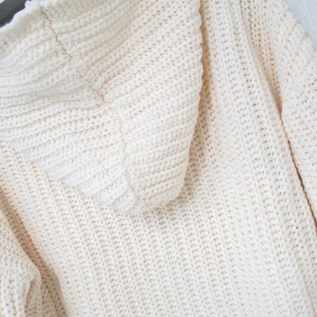 シンプル無地ですがざっくり編み&形がオシャレなニットパーカー ♪
