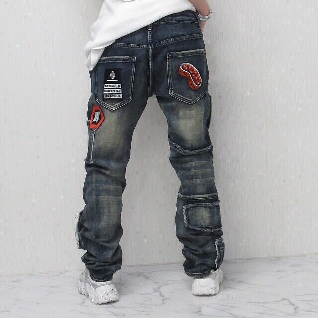 【3サイズ】ワッペンALL刺繍 ダメージ ビンテージ BOYSデニム デニムパンツ