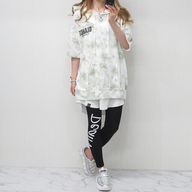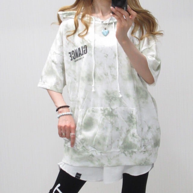 タイダイ ムラ染 Frontポケ付き パーカー プルオーバー オーバーサイズ グリーン