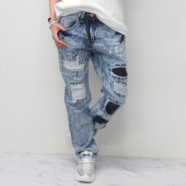 【3サイズ】ビンテージ ダメージ 刺繍 BOYSデニム デニムパンツ