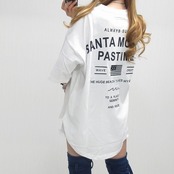USA WAVE 刺繍 バックロゴ ラウンドカット Tシャツ ホワイト