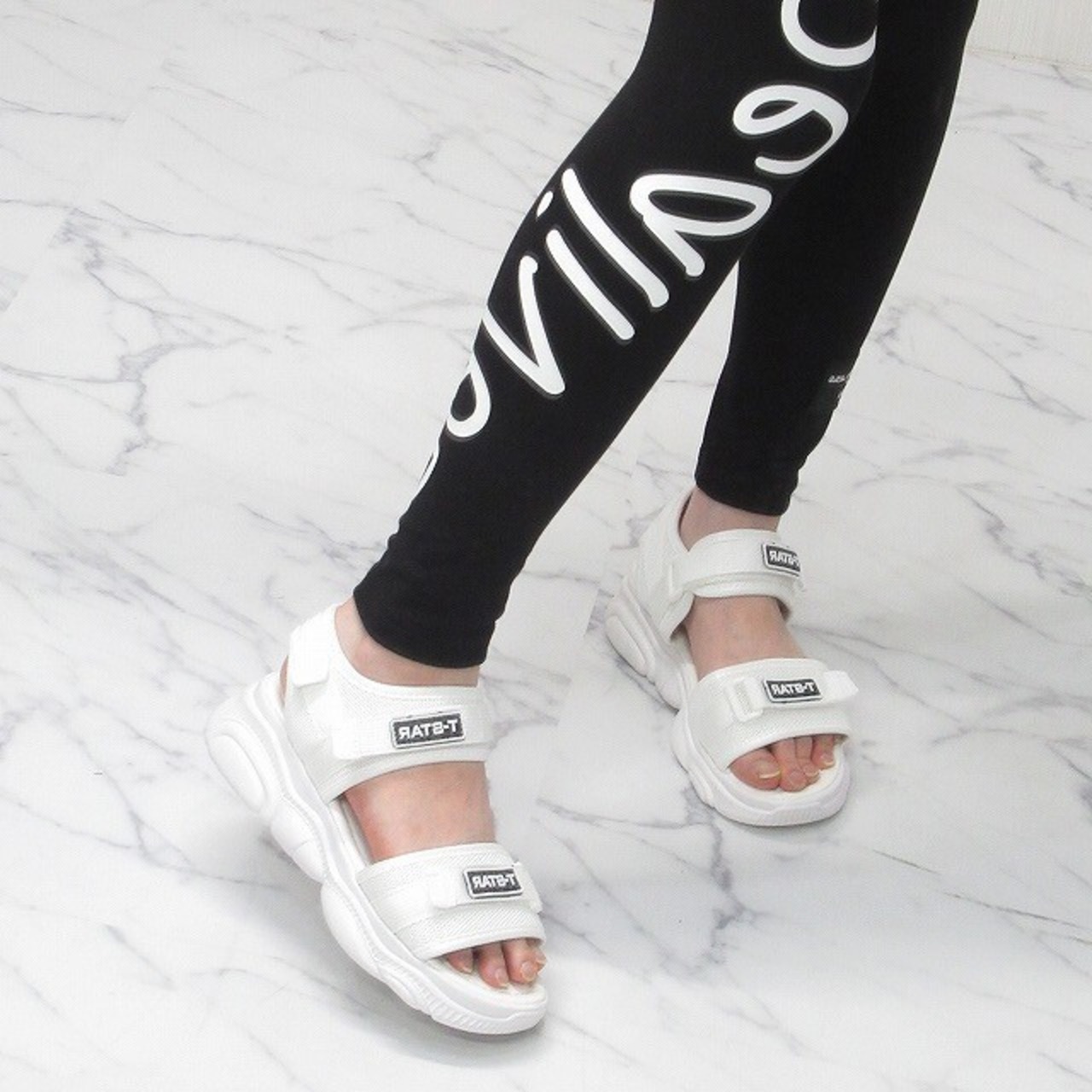 厚底サンダル スポサン ロゴ シューズ 履き心地抜群 ホワイト