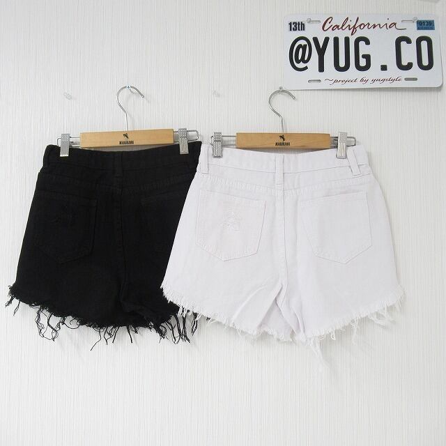 ハードダメージ デニム Front釦 ショートパンツ ホワイト
