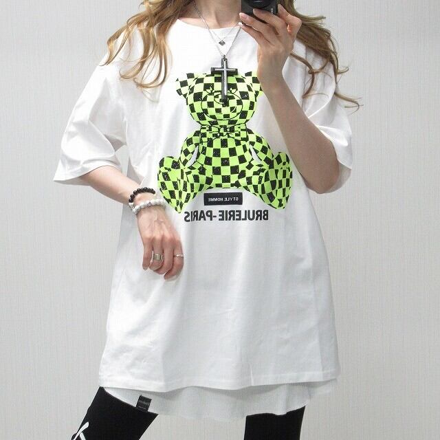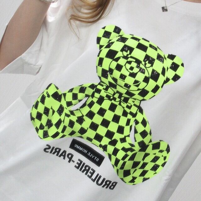 クマちゃん ベアー ビジュー バックロゴ Tシャツ 綿100% ホワイト