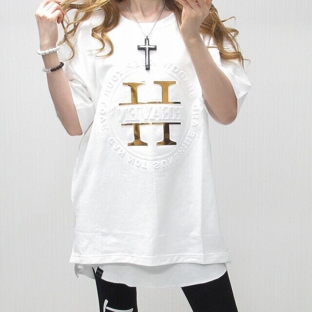 Frontエンボスロゴ Hロゴ スウェット BIGTシャツ 綿100% ホワイト