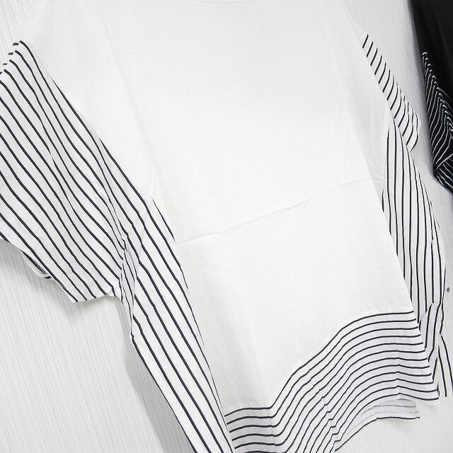 ストライプ柄 切替 プルオーバー チュニック ホワイト