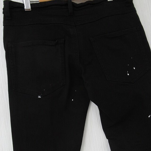 ダメージInペイズリー柄 ペイント BOYSデニムパンツ ストレートパンツ ブラックデニム パンツ