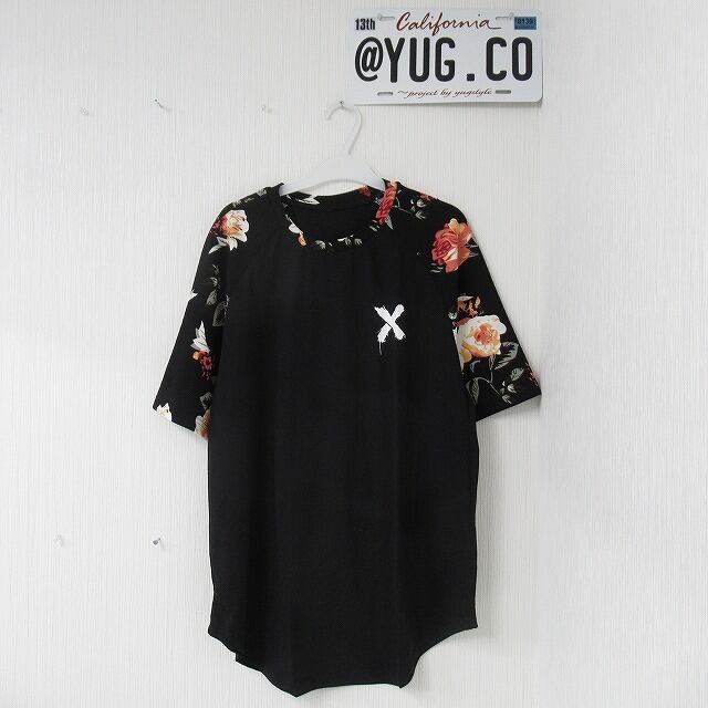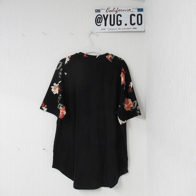 袖Frower 花柄 切替 エンボス加工 チュニック Tops