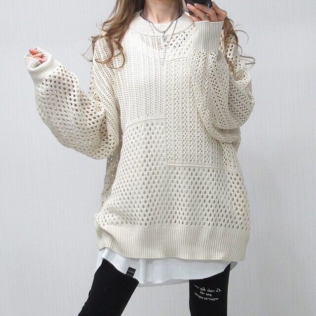 カギ編み 透かし編み ゆるかわニット オーバーニット ベージュ