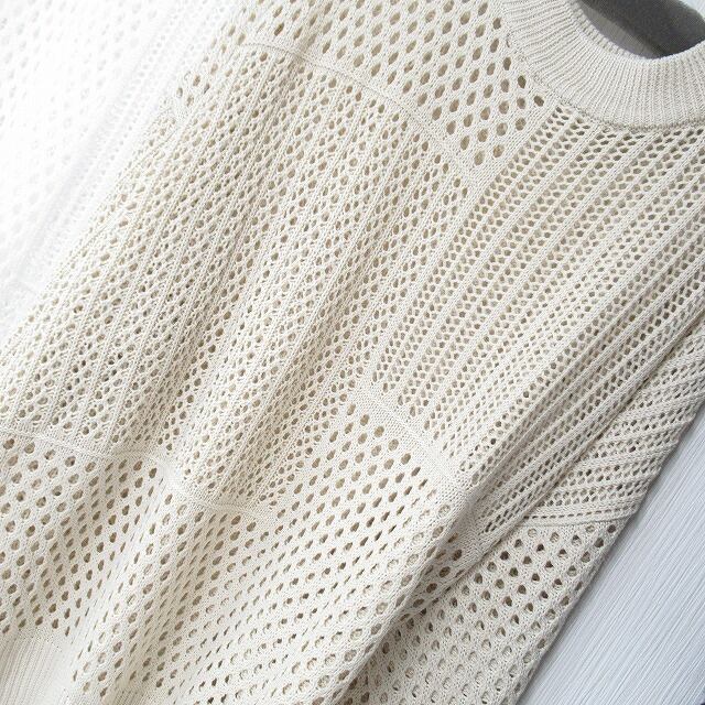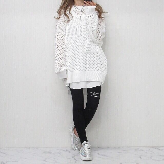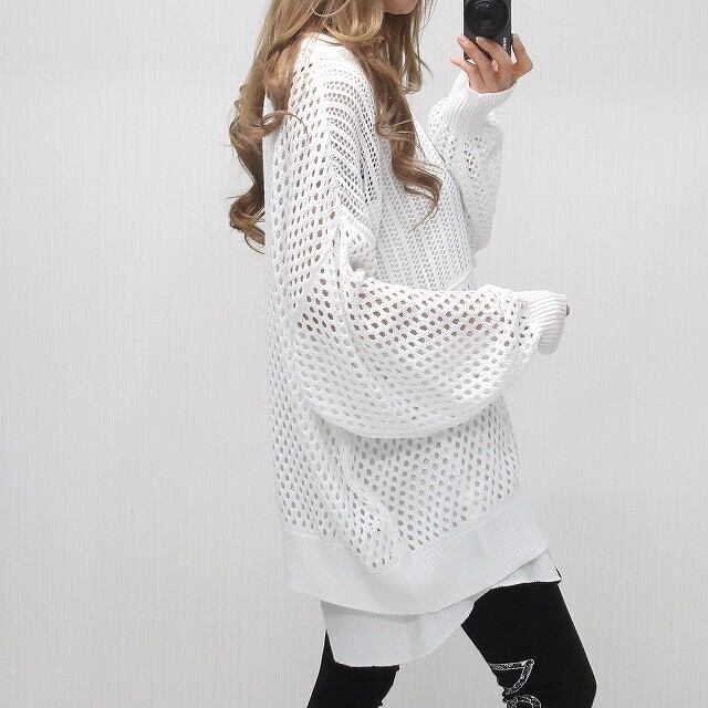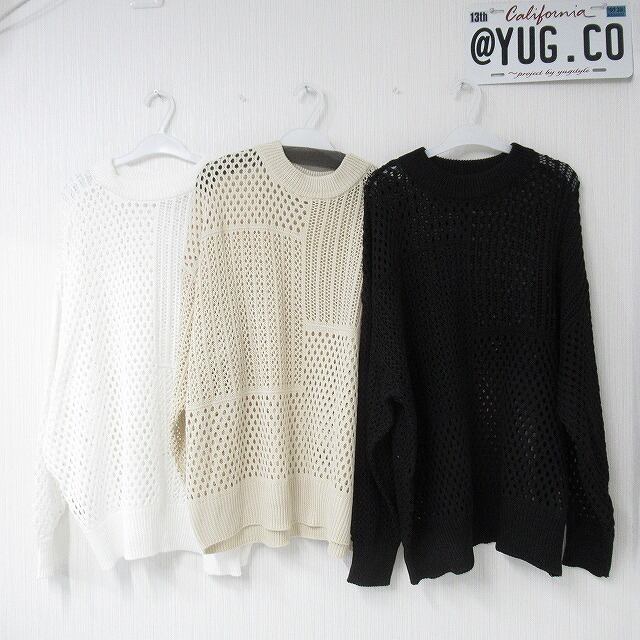 カギ編み 透かし編み ゆるかわニット オーバーニット ホワイト