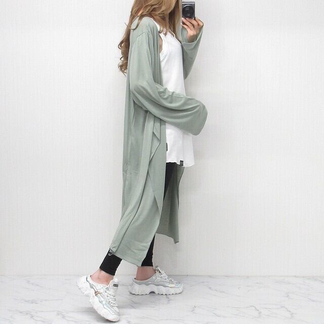 シンプル 無地 Frontドレープ ゆるかわ トッパー Long カーディガン ミント