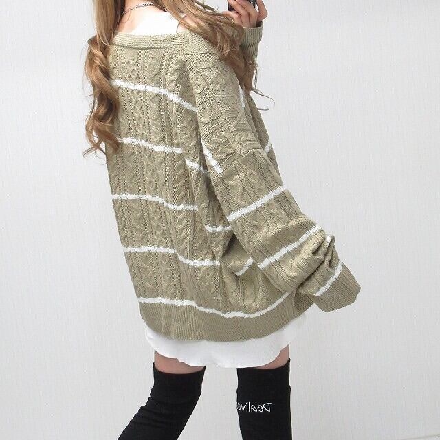 ケーブル編みで編み方もオシャレ&ボーダー配色のゆるカワニットカーディガン♪♪