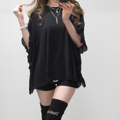 バタフライスリーブ フレア シフォン切替 チュニック ブラック