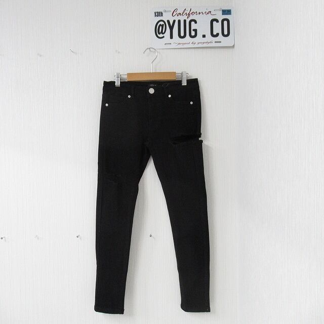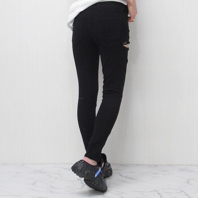 【2size】肌魅せ Sideダメージ 美脚脚長 ストレッチ スキニーデニム ブラック