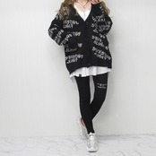 ロゴ総柄 バイカラー ゆるかわニット 肉厚 カーディガン ブラック