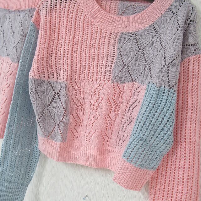 配色 ニット 鍵編み 上下セットアップ Tops&スカート
