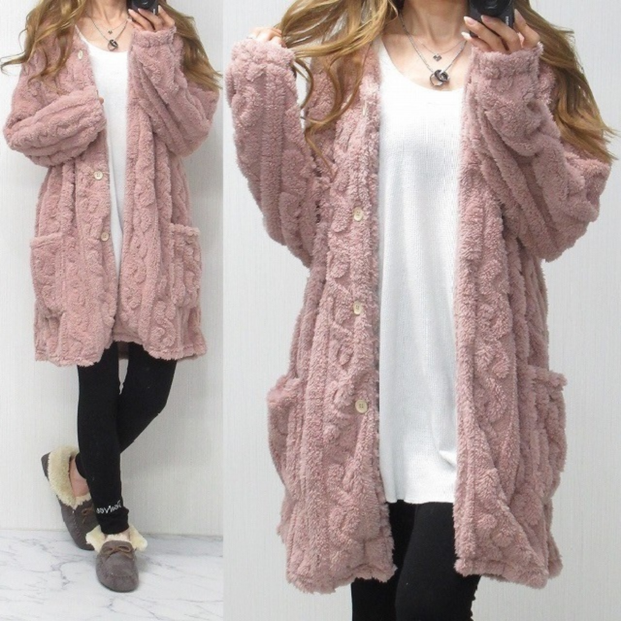 【4カラー】シープボア カーディガン ふわっふわ モコモコ エンボス