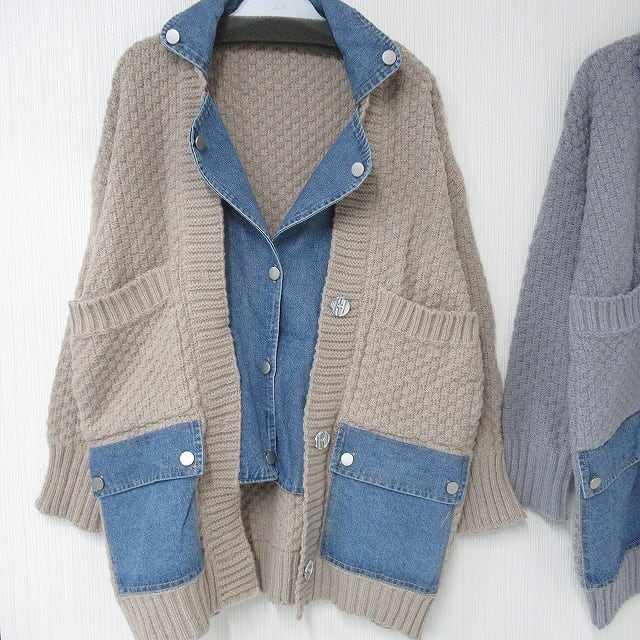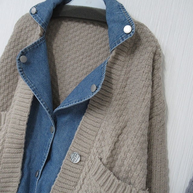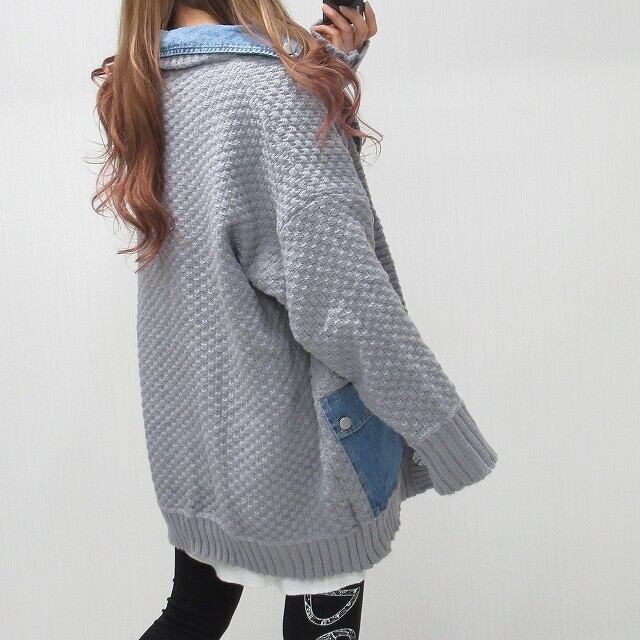 ざっくりニットが肉厚でオシャレ♪切替デニムジャケカーディ☆