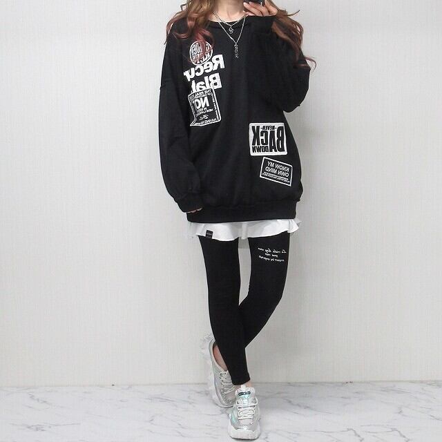 Frontワッペン&ロゴ サークルBackロゴ プルオーバー トレーナー ブラック