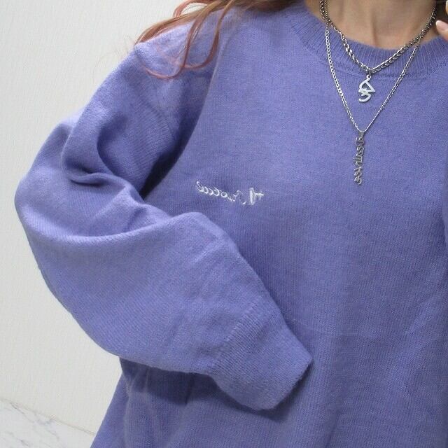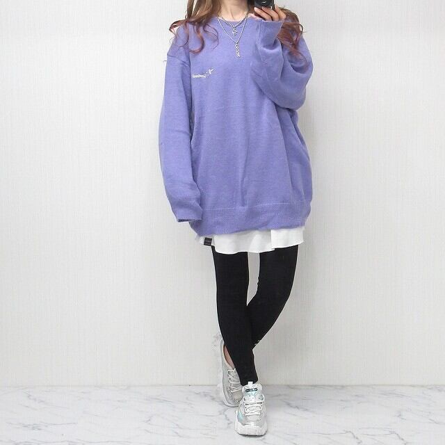 Backワッペン ロゴ もっちり ニット オーバーシルエット パープル