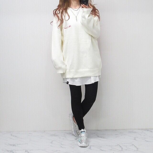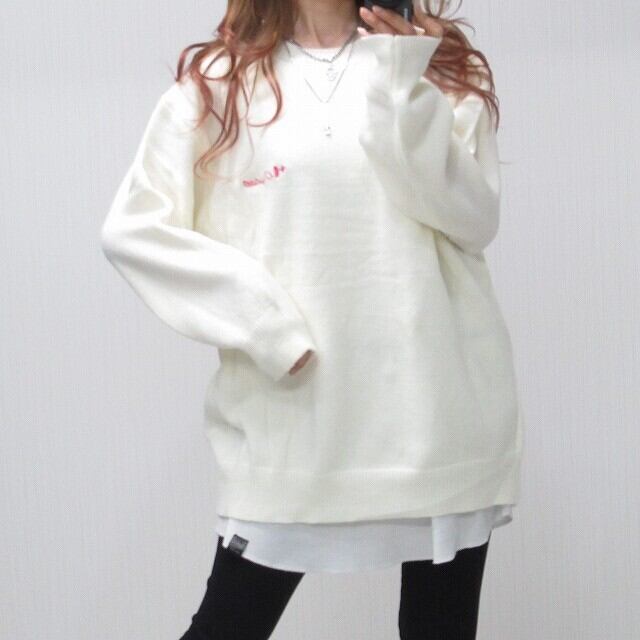 Backワッペン ロゴ もっちり ニット オーバーシルエット オフホワイト