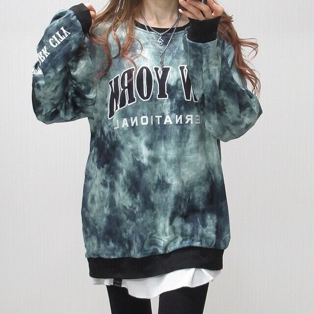 タイダイ ムラ染 NYロゴ 袖ロゴ プルオーバー