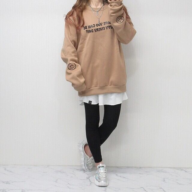 ニコちゃん 袖カワ Frontロゴ 裏起毛 トレーナー オーバーシルエット