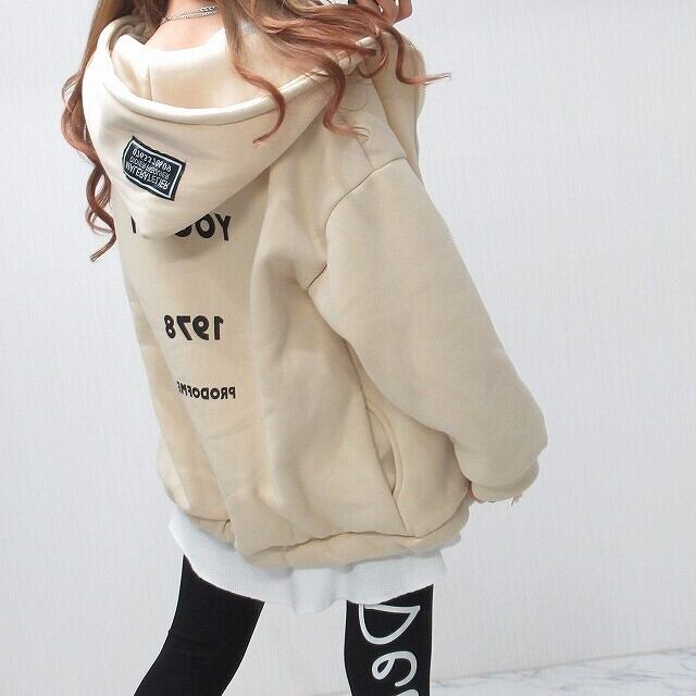 バックロゴ&フードワッペン 裏起毛 肉厚 バルーン ZIPパーカー ベージュ