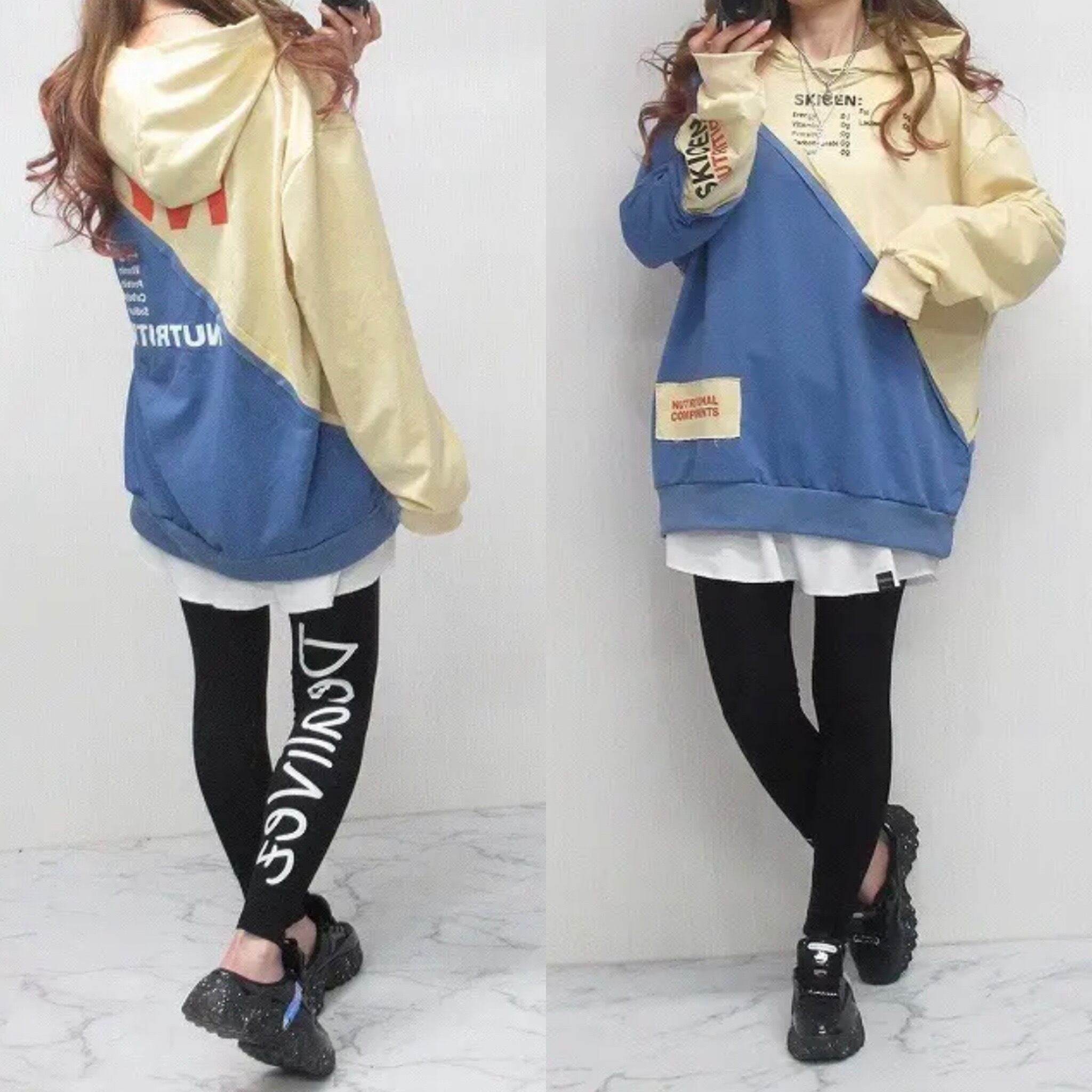 パッチワーク風配色切替のBIGパーカー⭐︎
