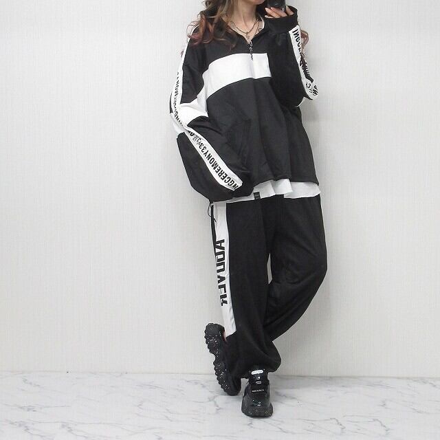 【SET UP】袖ラインロゴ Sideロゴ Tops&パンツ 上下セットアップ インポート