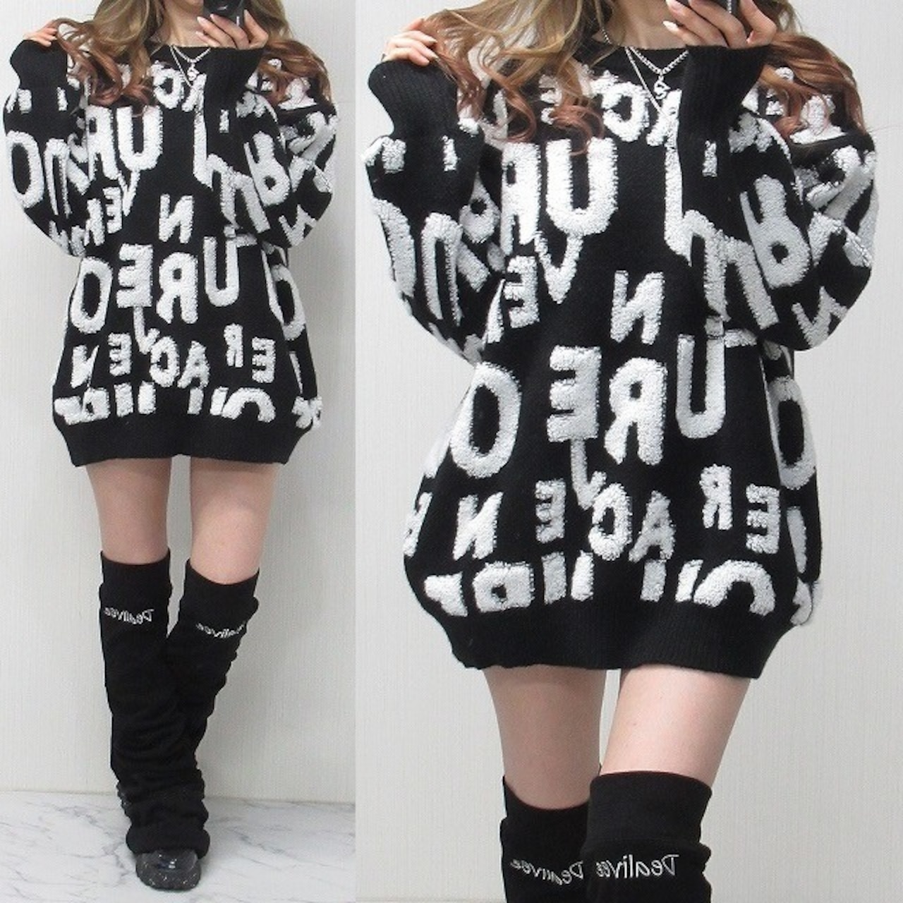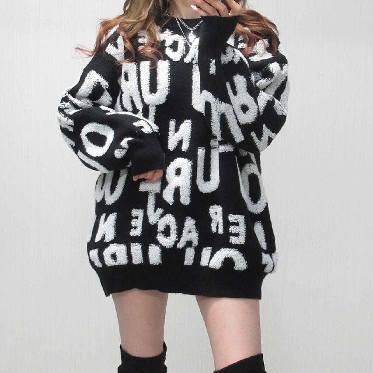 サガラロゴ 総柄 バイカラー 肉厚 ニット オーバーシルエット ホワイトロゴ