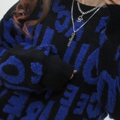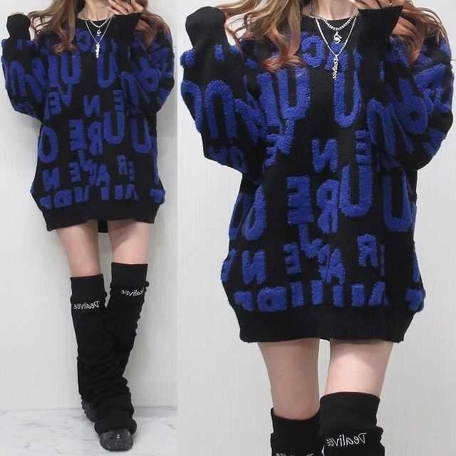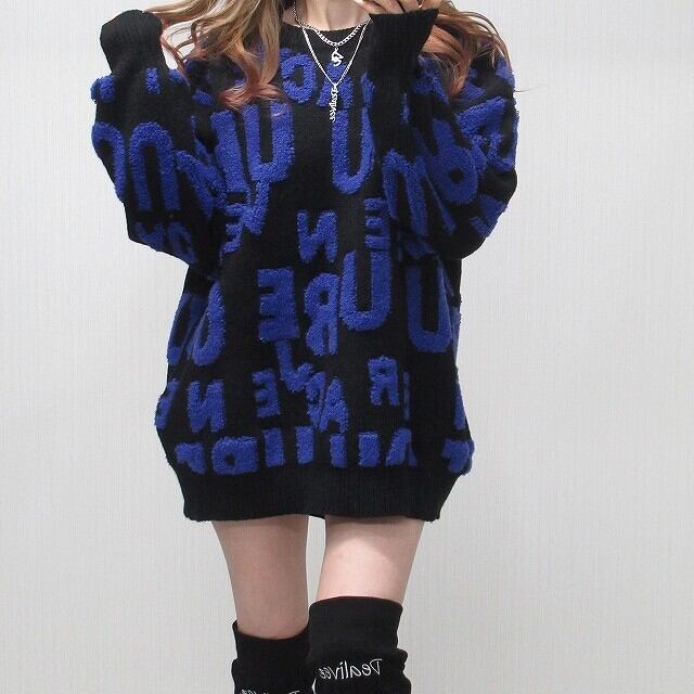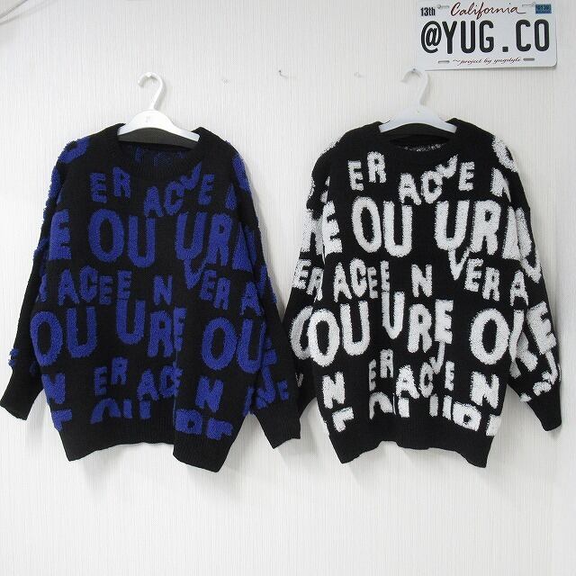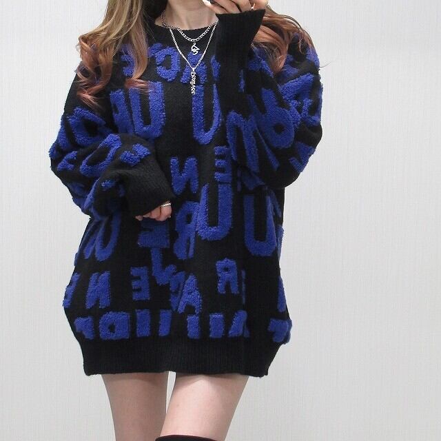 サガラロゴ 総柄 バイカラー 肉厚 ニット オーバーシルエット ブルーロゴ