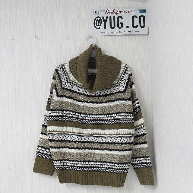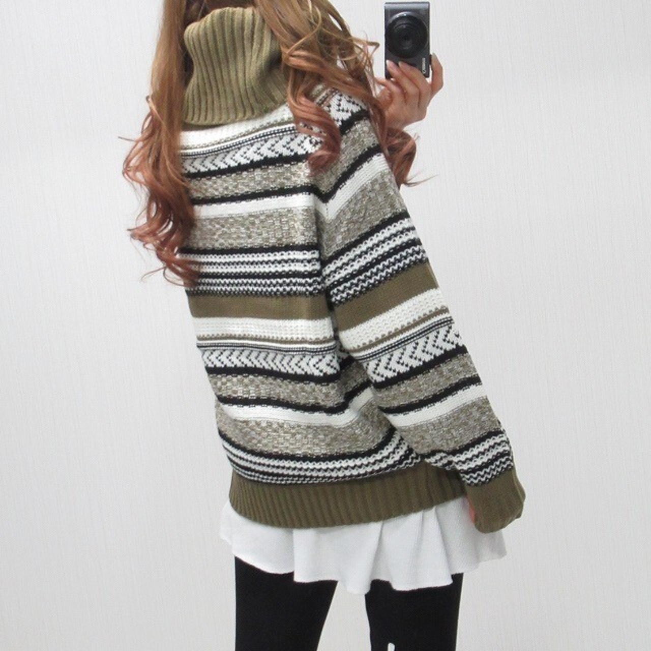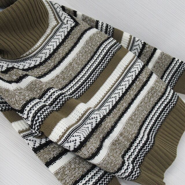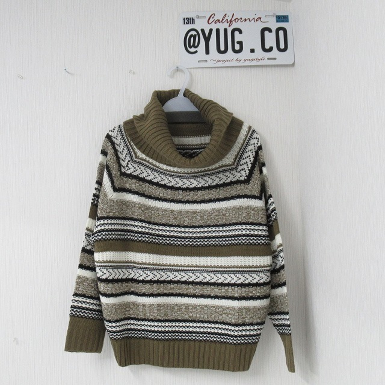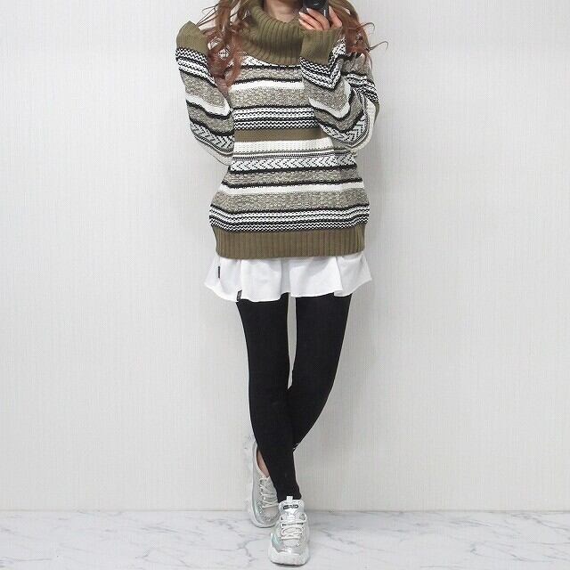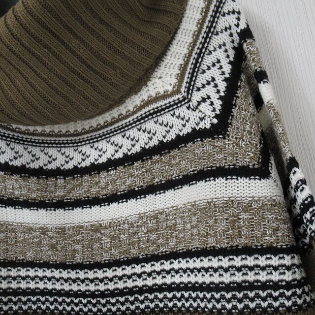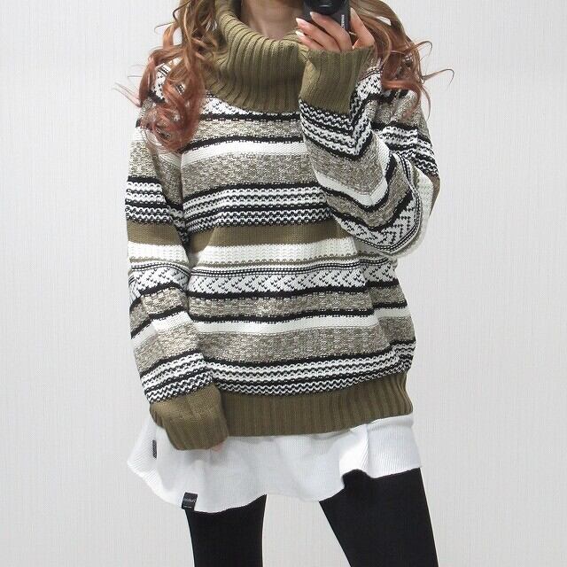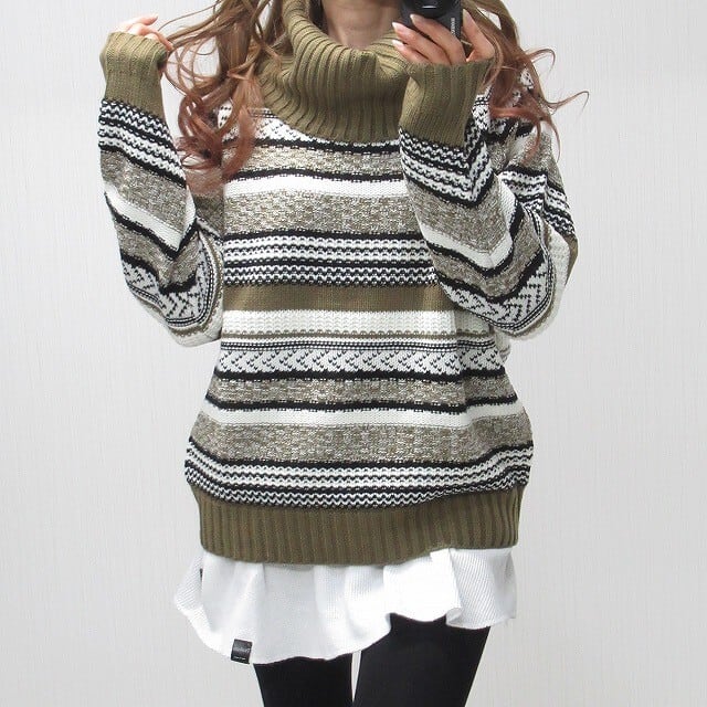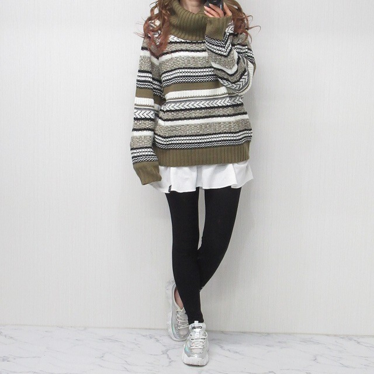 オフタートル 折り返し ハイネック マルチボーダー ニット