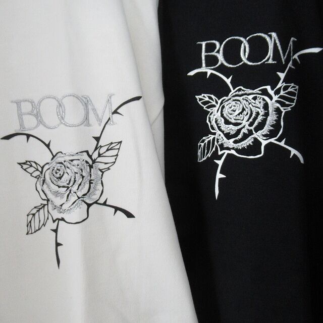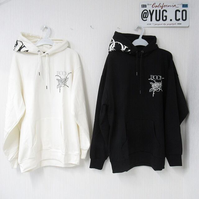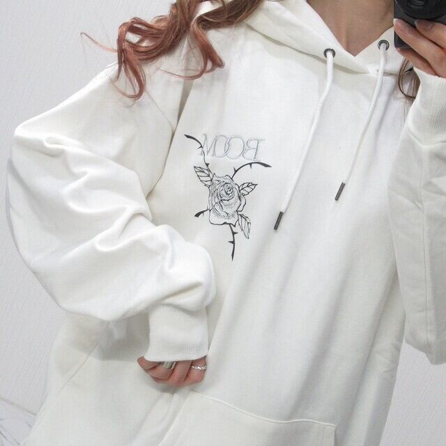 ストリート フードロゴ ローズ刺繍 バックロゴ ポイント刺繍 BIGパーカー ユニセックス オフホワイト