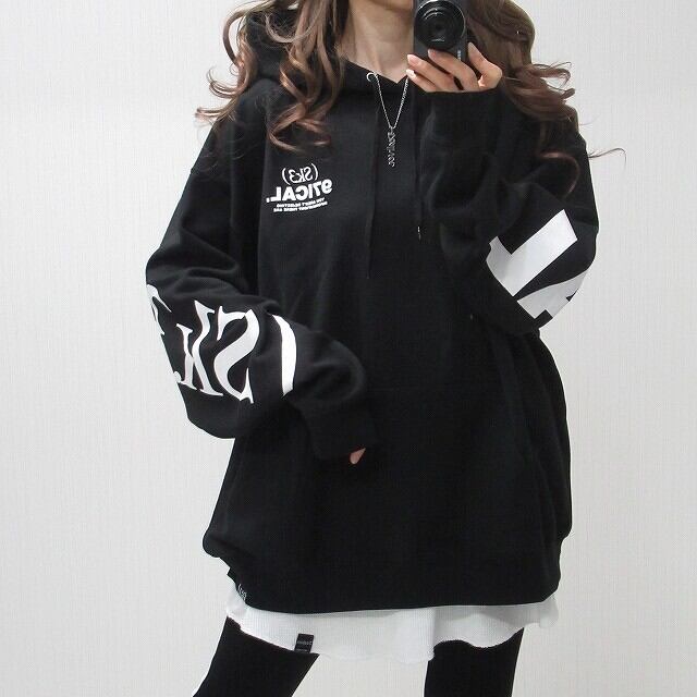 ストリート バックロゴ 袖ロゴ Frontポケット BIGパーカー ユニセックス ブラック