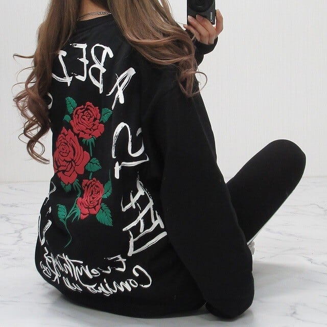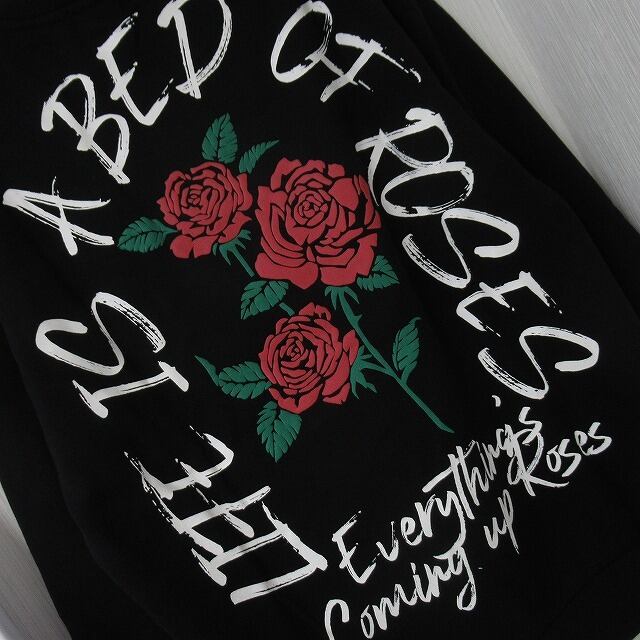 発泡 ローズ柄 薔薇 バックロゴ ストリート 裏起毛 トレーナー ユニセックス ブラック