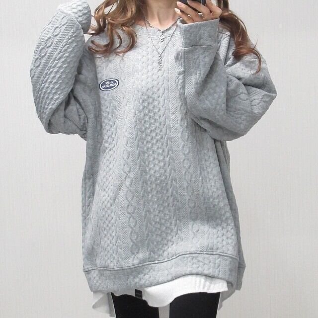 エンボス地 チェーン BIGプルオーバー ユニセックス インポート グレー
