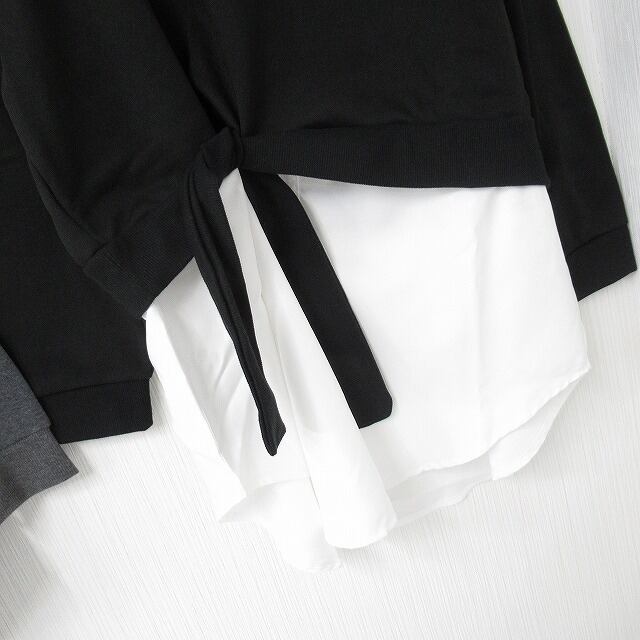レイヤード シャツ 切替 Side絞り レイヤード プルオーバー ブラック