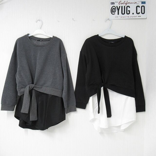 レイヤード シャツ 切替 Side絞り レイヤード プルオーバー チャコール