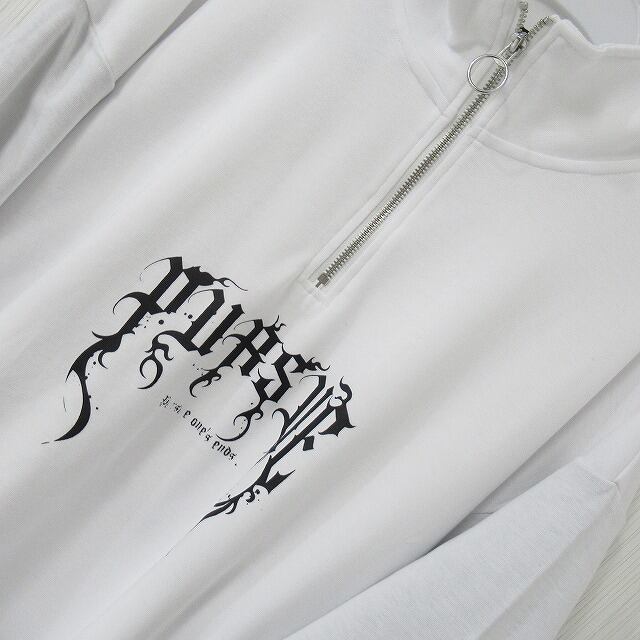 トライバル ハーフZip ハイネック 袖レイヤード 重ね着 プルオーバー ホワイト