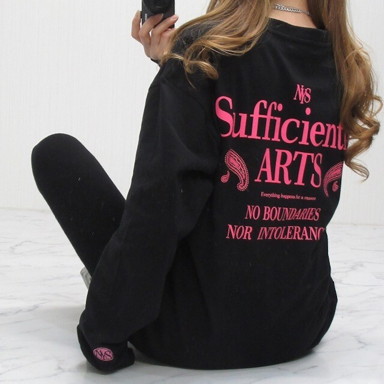 NYロゴ モノグラム発泡 袖刺繍 バックロゴ ロンT 綿100% ブラック
