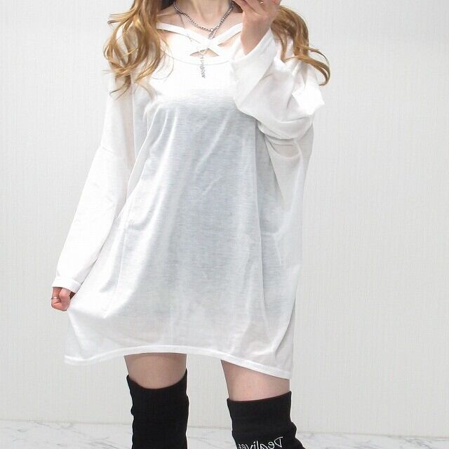 Frontクロス 肌見せ 裾アシメ リバーシブル チュニック ホワイト