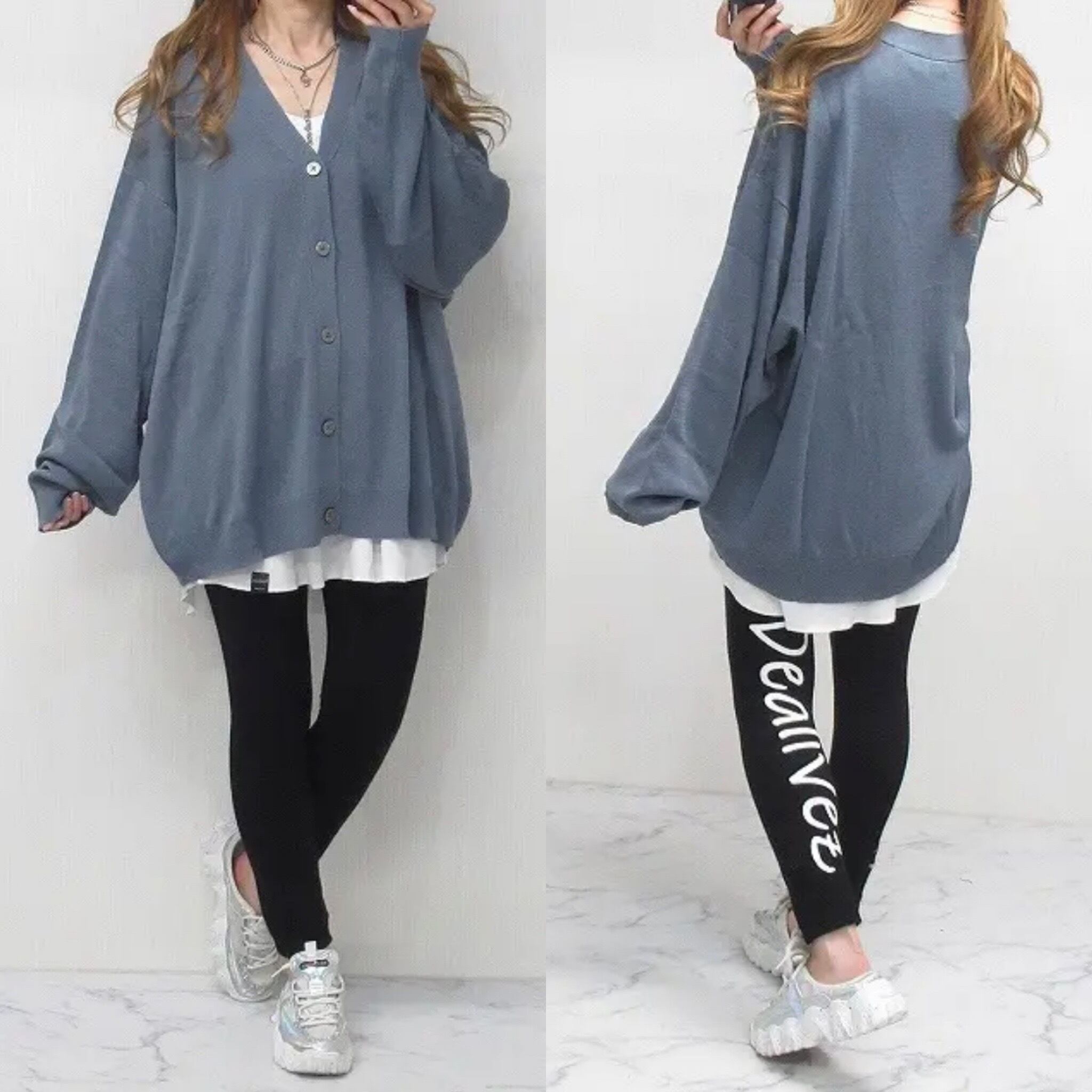 シンプル 無地 ニット カーディガン オーバーシルエット ブルー