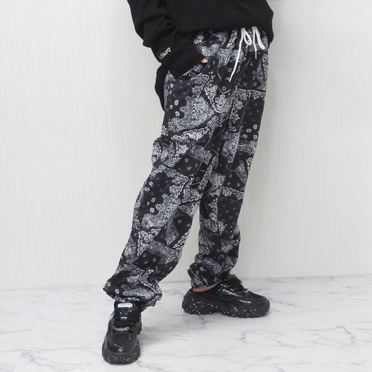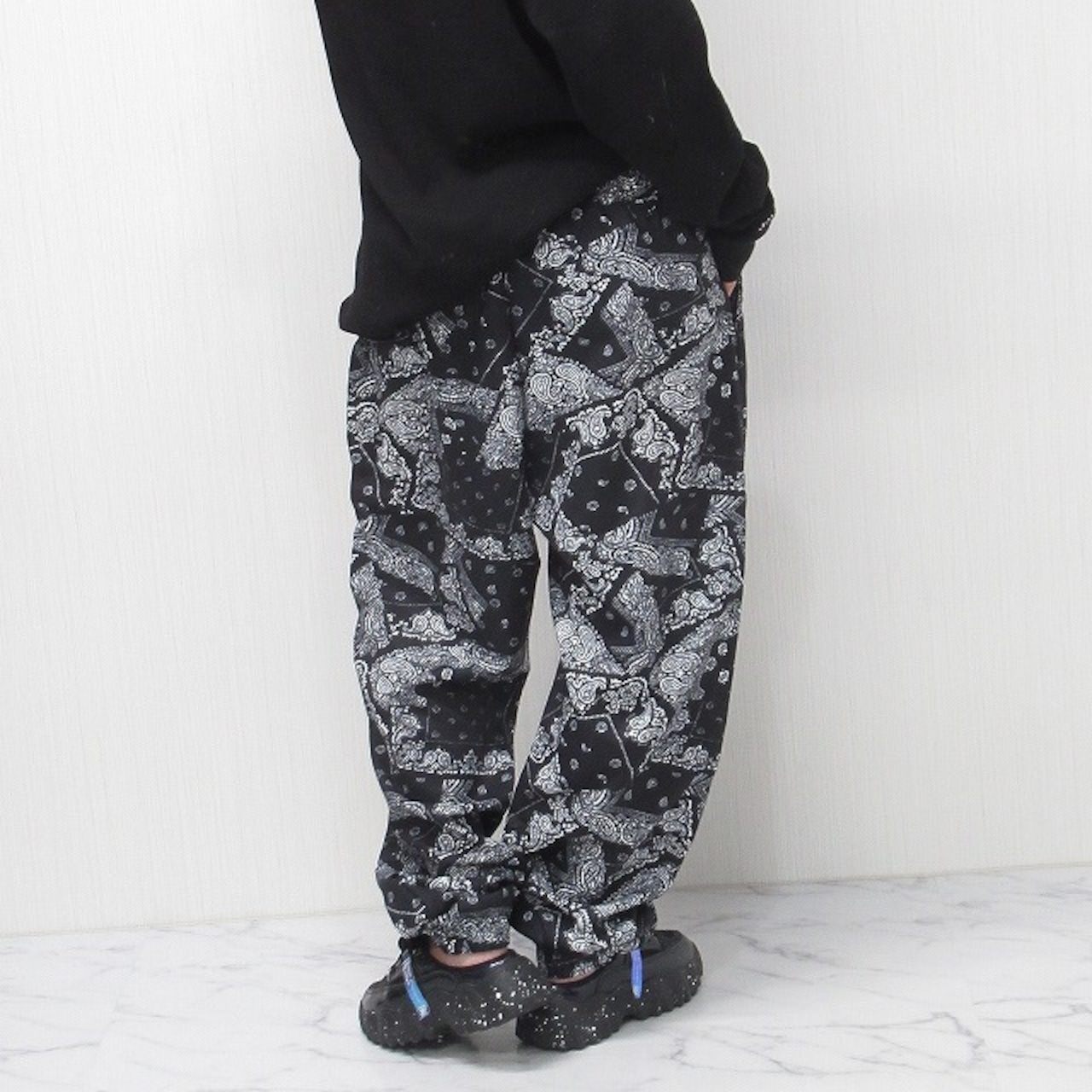 ペイズリー柄 BOYSパンツ ワイドパンツ ワークパンツ ブラック