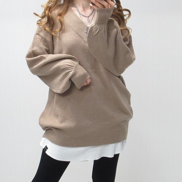 Vネック もっちり 袖ぷっくり ニット オーバーシルエット