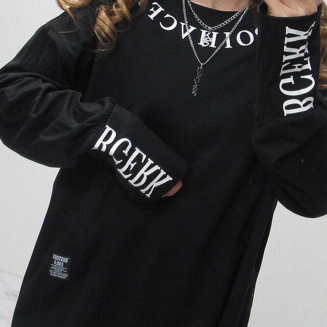 胸元ロゴ 袖ロゴ ロンT ブラック