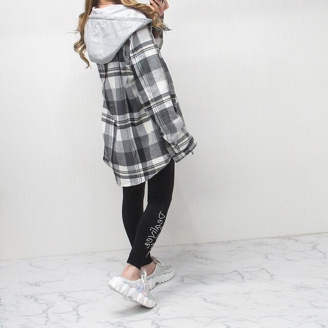 チェック柄シャツに異素材フード付きなので後ろ姿もオシャレなカジュアルシャツ⭐︎