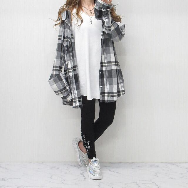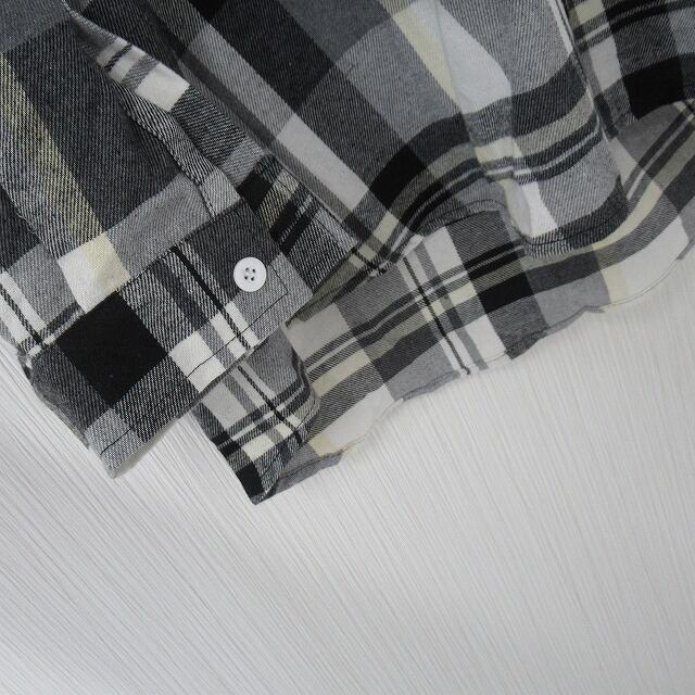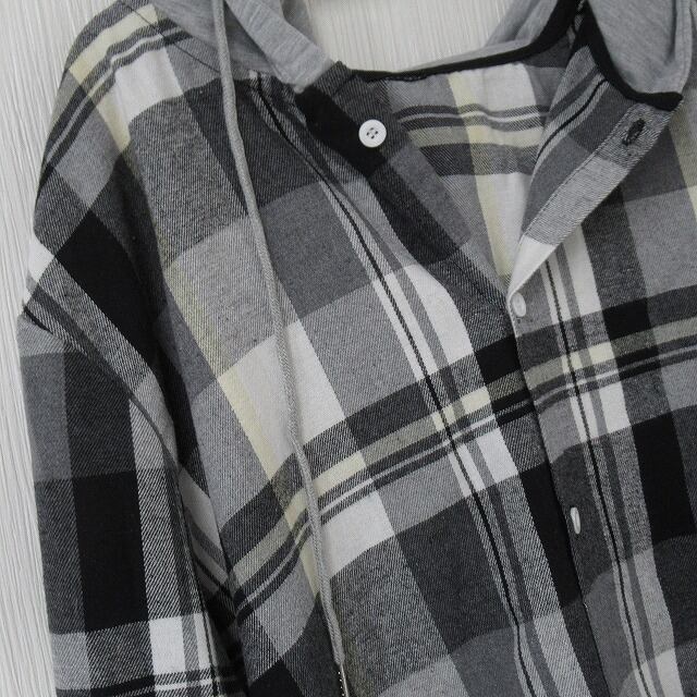 チェック柄 フード付き 異素材MIX BIGシルエット オーバーシャツ ブラック